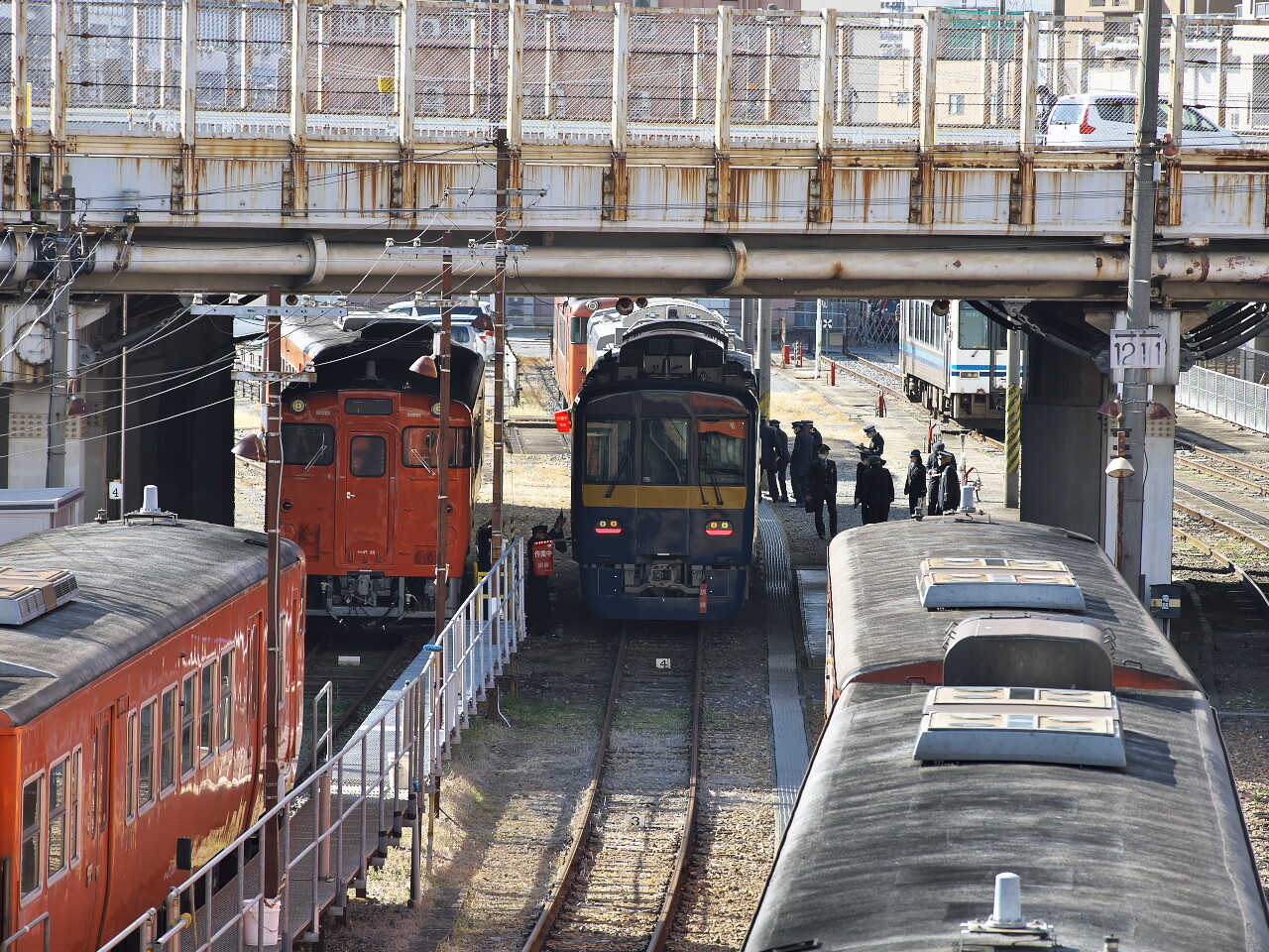 架線検測装置などを搭載するトレーラー車のDEC741-101の2両編成 外観デザインは、警戒色で検測車のイメージでもある黄色と、クモヤ143系のような 事業用車に使われる青色の2色 この2色による 映え も意識したデザインとの事だが? DEC741-101の側面には、この車両のコンセプト 鉄道の安全を守ること や DEC741が走る風景 といったことを示すロゴがデザインされています DEC741は、電気設備や線路設備などを走行しながら検査・測定する 総合検測車 2021.7に廃車となった443系の代替となる車両となります