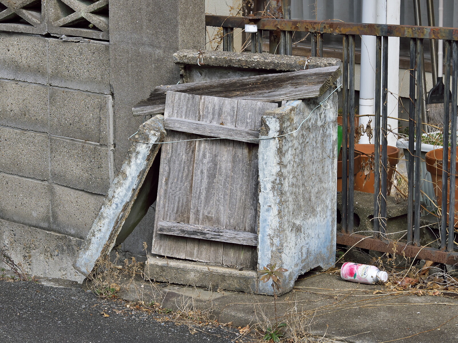 2022年02月20日 (C-3) ノスタルジック「コンクリート製のゴミ箱」/ 岡山県玉野市 昭和の町並みが残りノスタルジックな雰囲気を醸し出しだすとともに失われつつ路地の風景を残す...開発に伴う消滅の波が押し寄せることは避けられない現実ですまちかどにたたずむ ゴミ箱 正式な名称はわかりません コンクリート製のゴミ箱、路地箱、ごんばこ etc. 今回、岡山県玉野市を散策中に偶然見つけた コンクリート製のゴミ箱見つけると何だか嬉しくなちゃいます岡山県玉野市奥玉※写真はクリックすると大きくなります タグ :#OLYMPUS#E-M1X#GoPro9#路地箱#ごんばこ#懐古#岡山県玉野市奥玉 「岡山県(コンクリート製のゴミ箱)」カテゴリの最新記事 「●コンクリート製のゴミ箱」カテゴリの最新記事 < 前の記事次の記事 > コメント コメントフォーム 名前 コメント 記事の評価 リセット リセット 顔 星 情報を記憶 コメントを投稿する