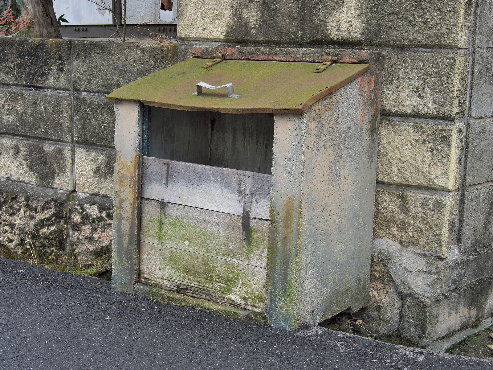 2022年02月20日 (C-5) ノスタルジック「コンクリート製のゴミ箱」/ 岡山県玉野市 昭和の町並みが残りノスタルジックな雰囲気を醸し出しだすとともに失われつつ路地の風景を残す...開発に伴う消滅の波が押し寄せることは避けられない現実ですまちかどにたたずむ ゴミ箱 正式な名称はわかりません コンクリート製のゴミ箱、路地箱、ごんばこ etc. 今回、岡山県玉野市を散策中に偶然見つけた コンクリート製のゴミ箱見つけると何だか嬉しくなちゃいます岡山県玉野市奥玉※写真はクリックすると大きくなります タグ :#OLYMPUS#E-M1X#GoPro9#路地箱#ごんばこ#懐古#岡山県玉野市奥玉 「岡山県(コンクリート製のゴミ箱)」カテゴリの最新記事 「●コンクリート製のゴミ箱」カテゴリの最新記事 < 前の記事次の記事 > コメント コメントフォーム 名前 コメント 記事の評価 リセット リセット 顔 星 情報を記憶 コメントを投稿する