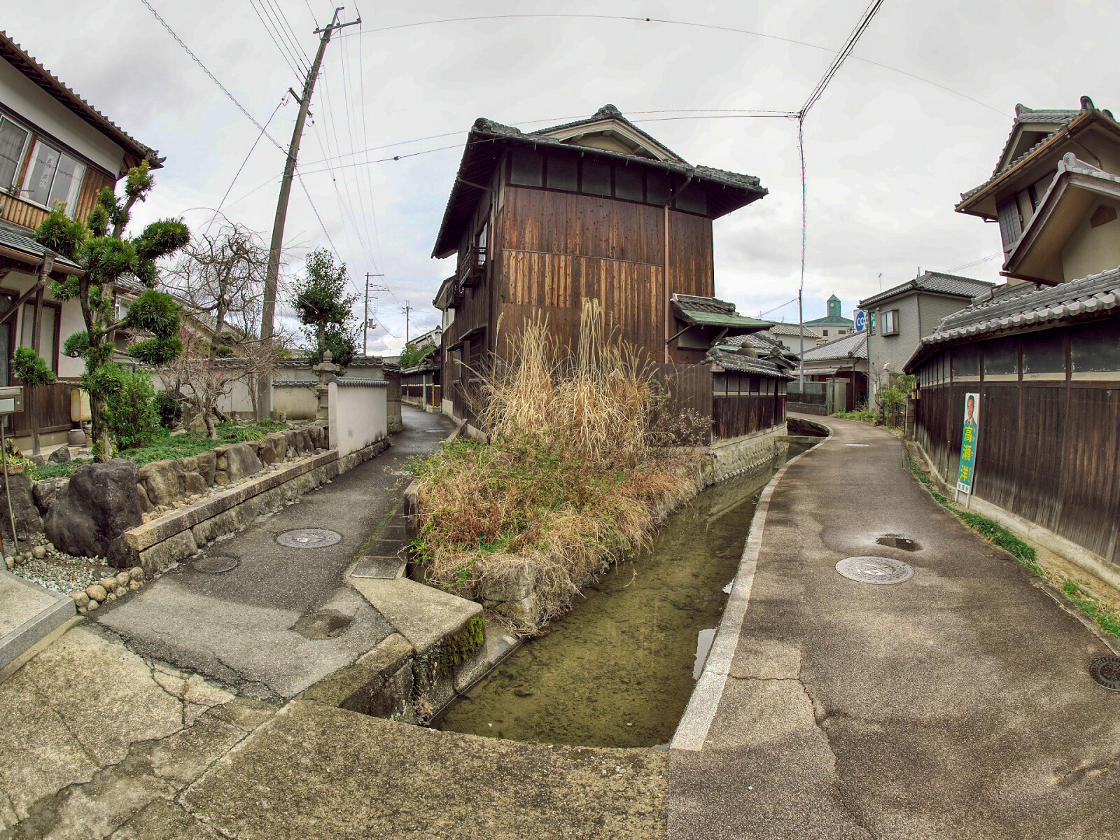 国登録有形文化財で無料公開されている旧来住家周辺には疎水が流れ