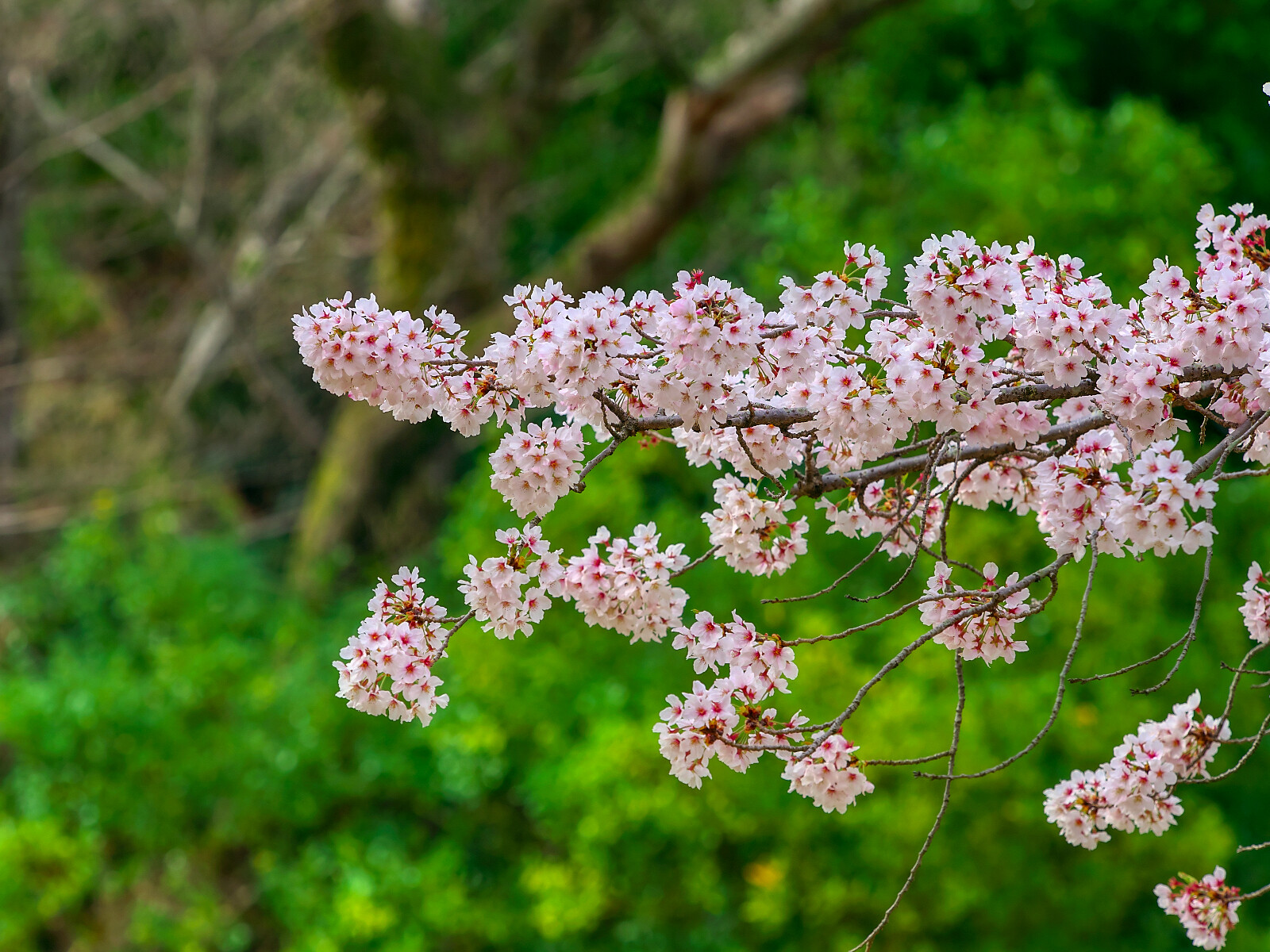 4月上旬から中旬頃には栄唱橋のたもとにある八重紅枝垂が見頃を迎えます