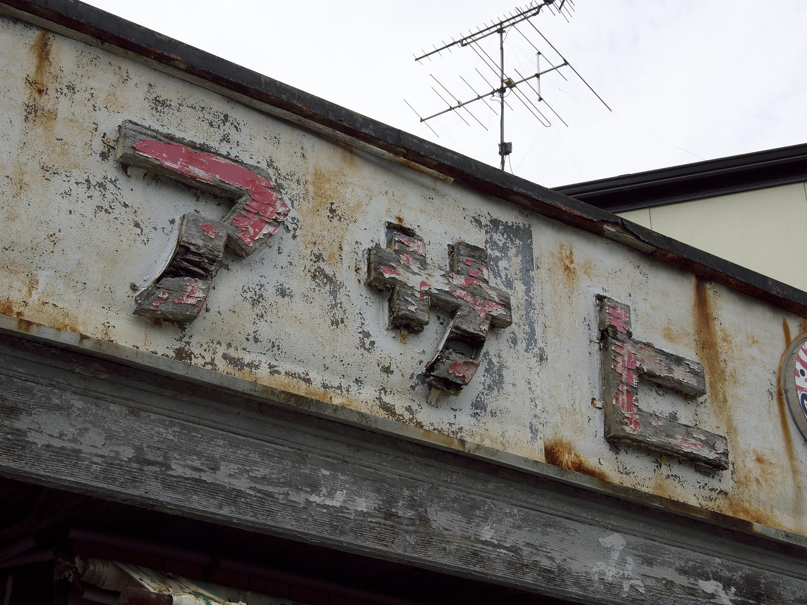 木製の看板が特徴的なお店、木製看板は現在では珍しい存在となってしまいました