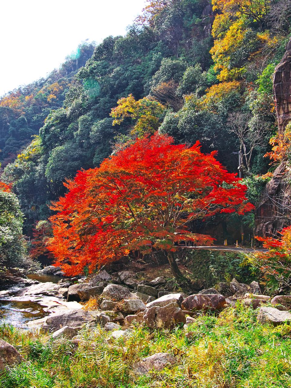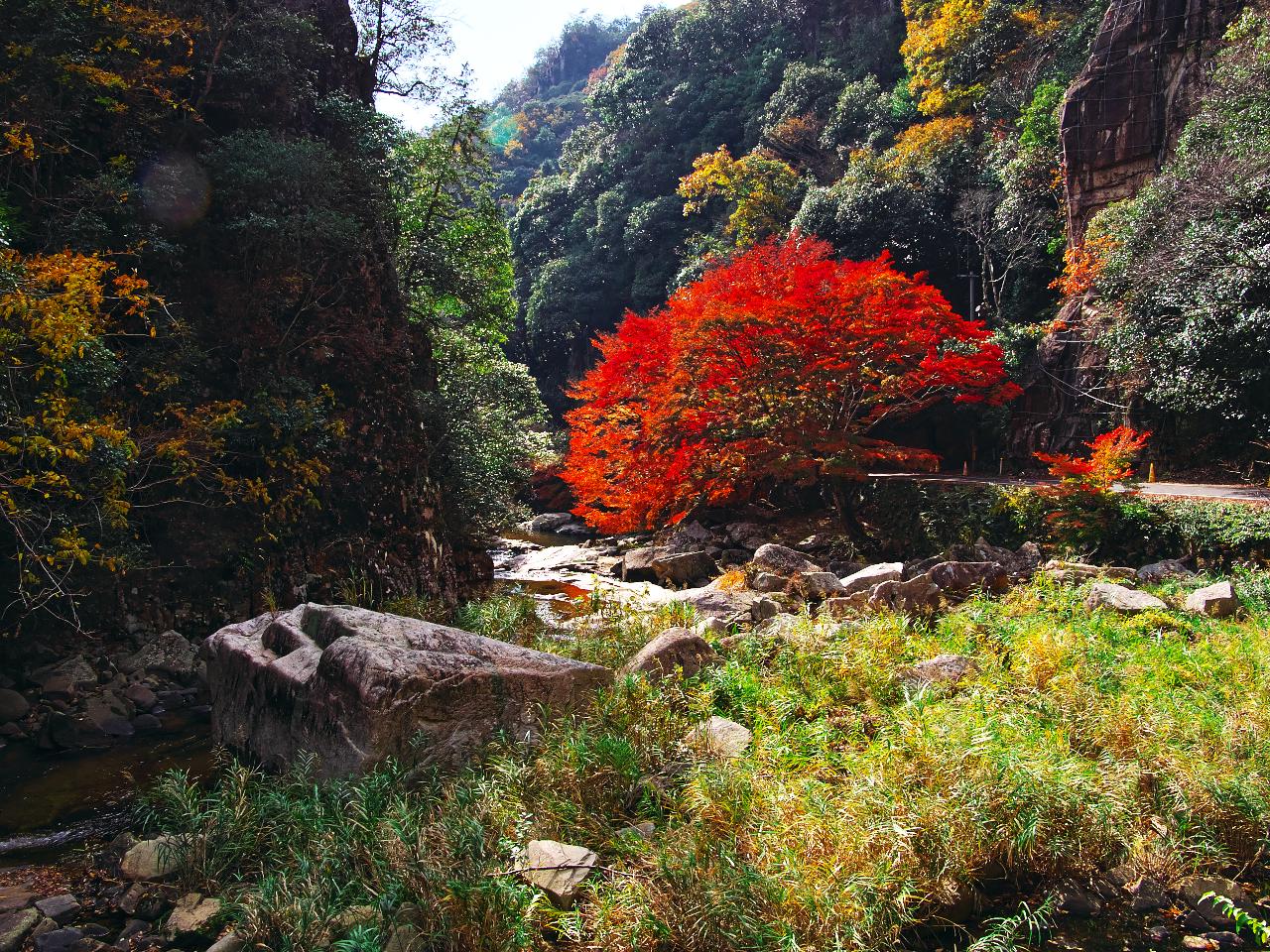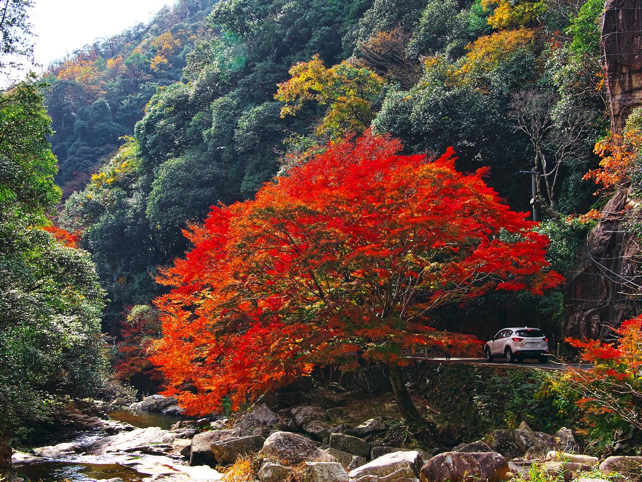 夏は新緑、秋は紅葉 清流きらめく名所壮大な渓谷美と川岸のモミジ並木🍂