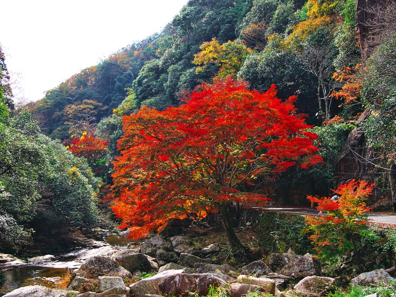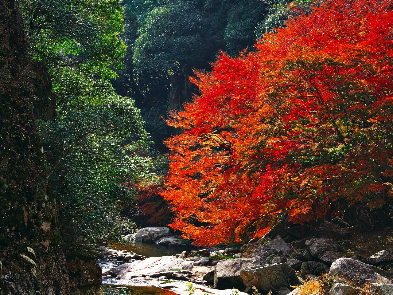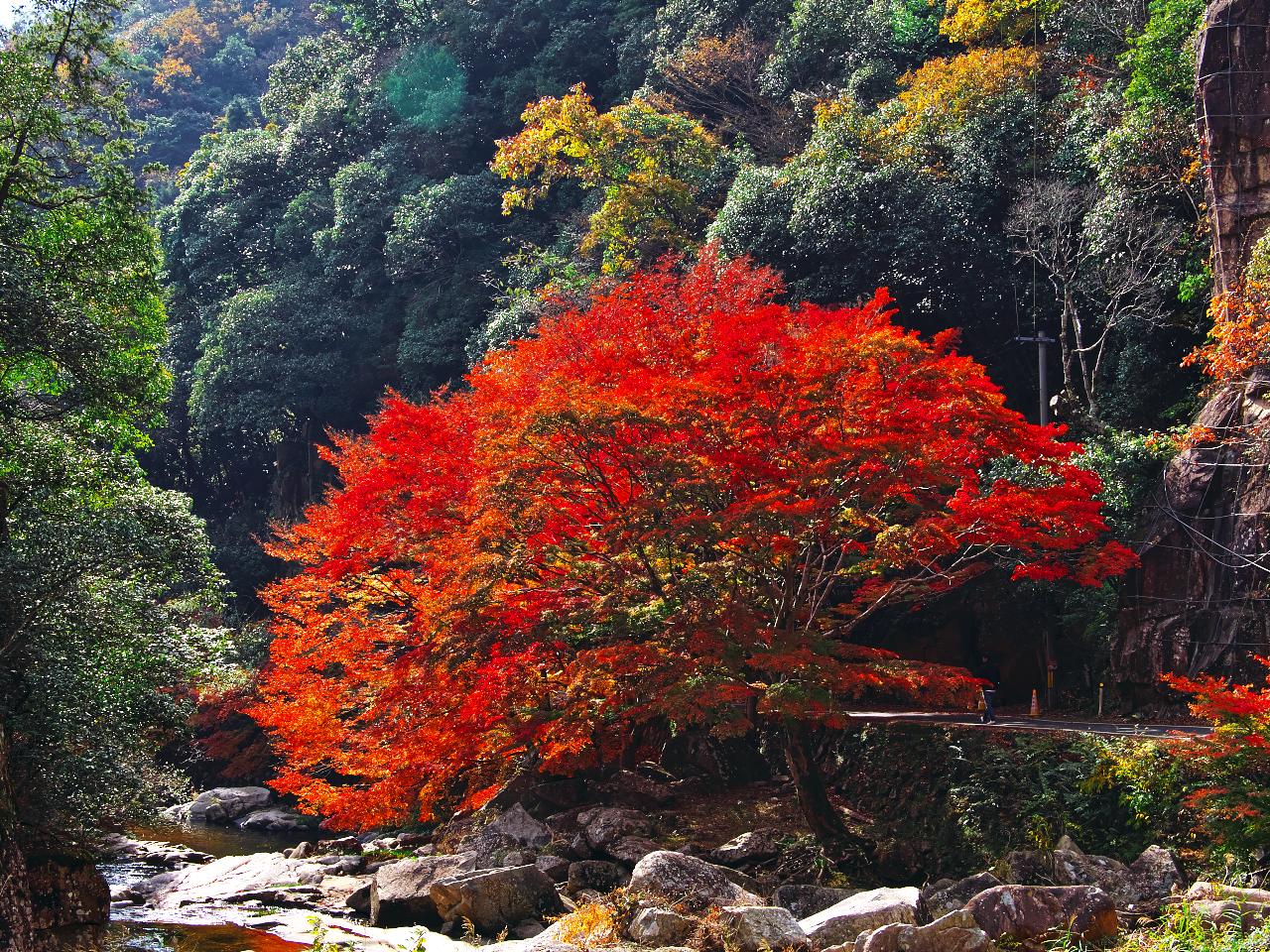 夏は新緑、秋は紅葉 清流きらめく名所壮大な渓谷美と川岸のモミジ並木🍂