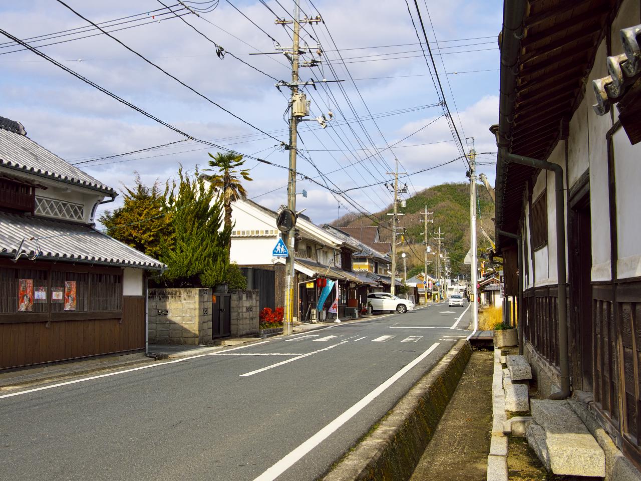 間口の広い平入りの民家が並ぶ静かな落ち着いた町並みです
