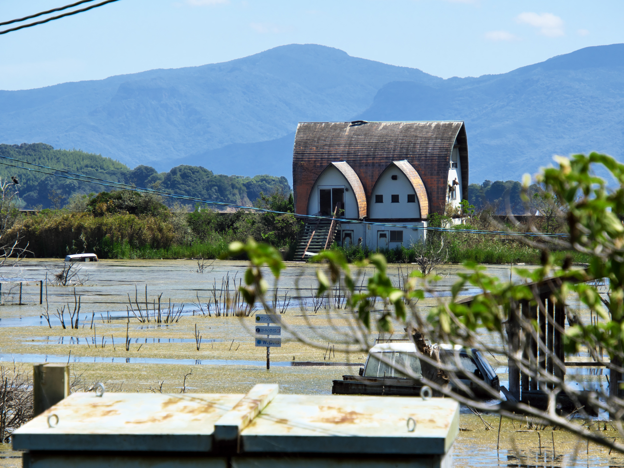 2019年09月08日 2019.9 何コレ珍百景!?『水没ペンション村❶』 岡山県瀬戸内市 岡山県瀬戸内市にあるペンション施設跡のようです ネット検索では Gファーム 等として紹介されていたり 複数の バンガロー や テニスコート 、 車両なども水没しています ローレンゴルフリンクス というゴルフ練習場跡も... 塩田跡をリゾート開発したが、その後放棄されたものらしい?鹿忍グリーンファーム跡 / 水没ペンション村岡山県瀬戸内市牛窓町鹿忍※写真はクリックすると大きくなります タグ :#岡山県瀬戸内市牛窓町鹿忍#鹿忍グリーンファーム跡#水没ペンション村#Gファーム#OLYMPUS#OM-D#PEN-F#E-M1markⅡ 「●水没ペンション村」カテゴリの最新記事 「 岡山県瀬戸内市」カテゴリの最新記事 < 前の記事次の記事 > コメント コメントフォーム 名前 コメント 記事の評価 リセット リセット 顔 星 情報を記憶 コメントを投稿する