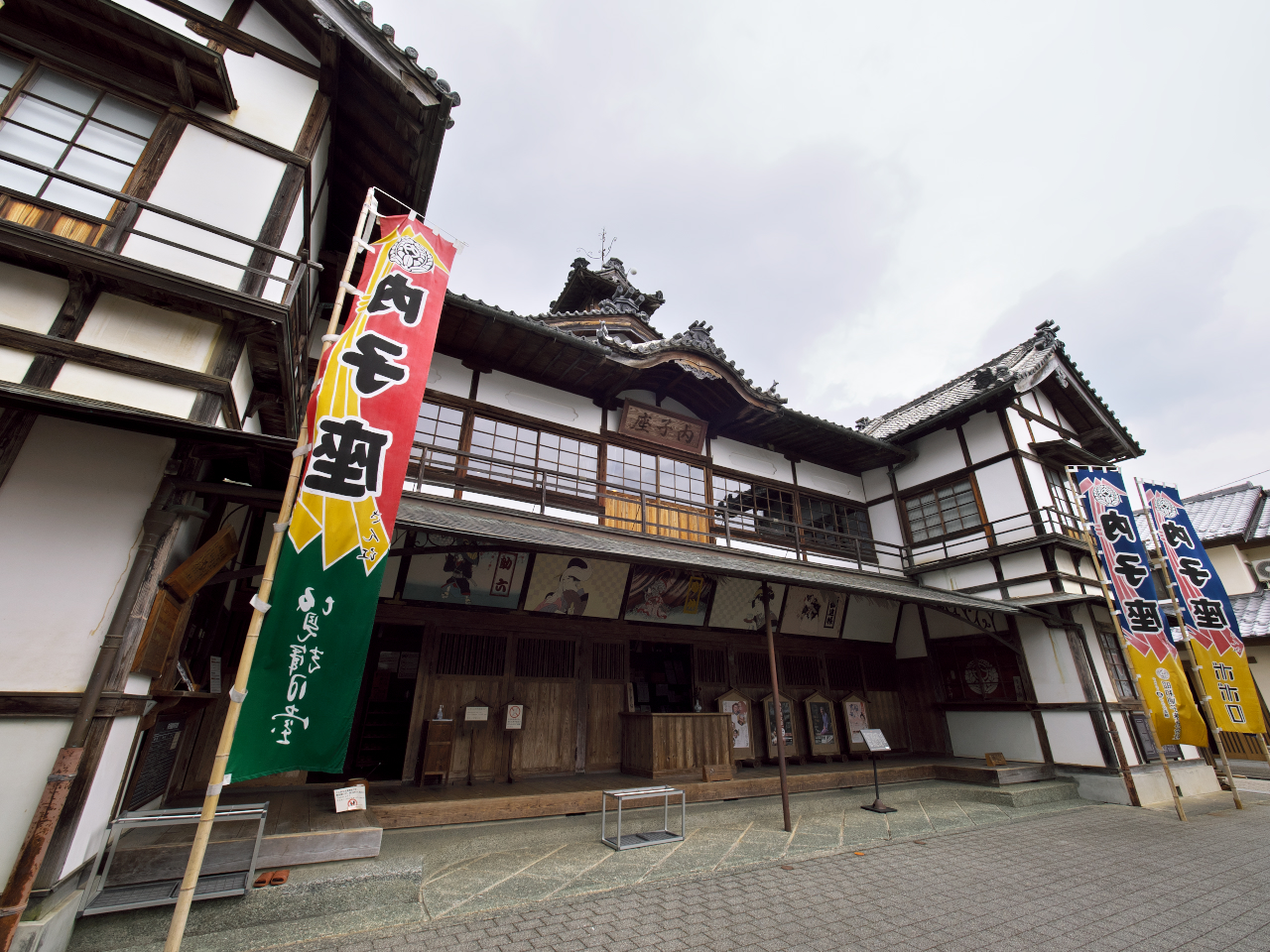 内子座は、重要伝統的建造物群保存地区 八日市護国 の近くにある芝居小屋