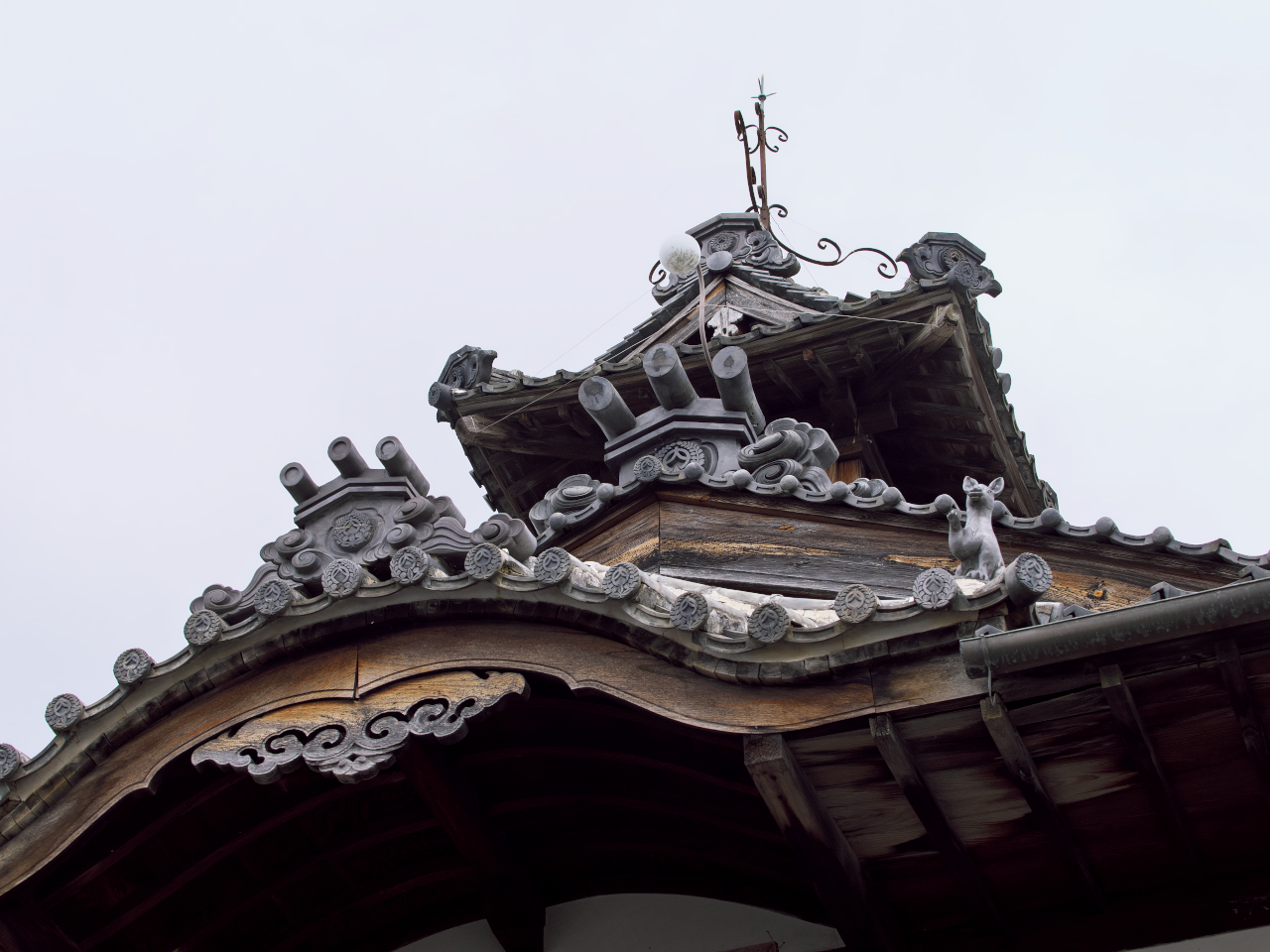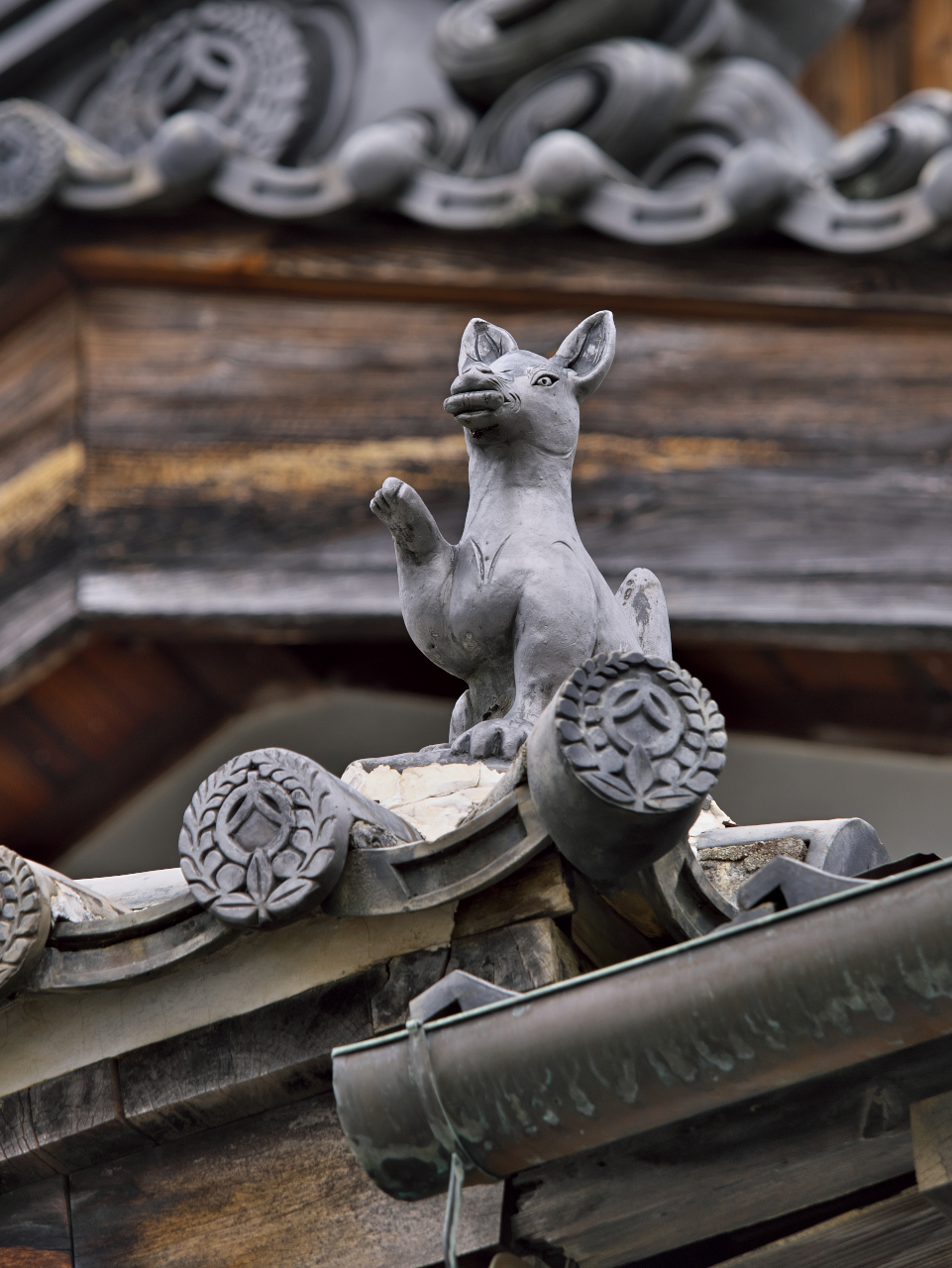 瓦屋根の上に招き猫ならぬ、招き狐 が?