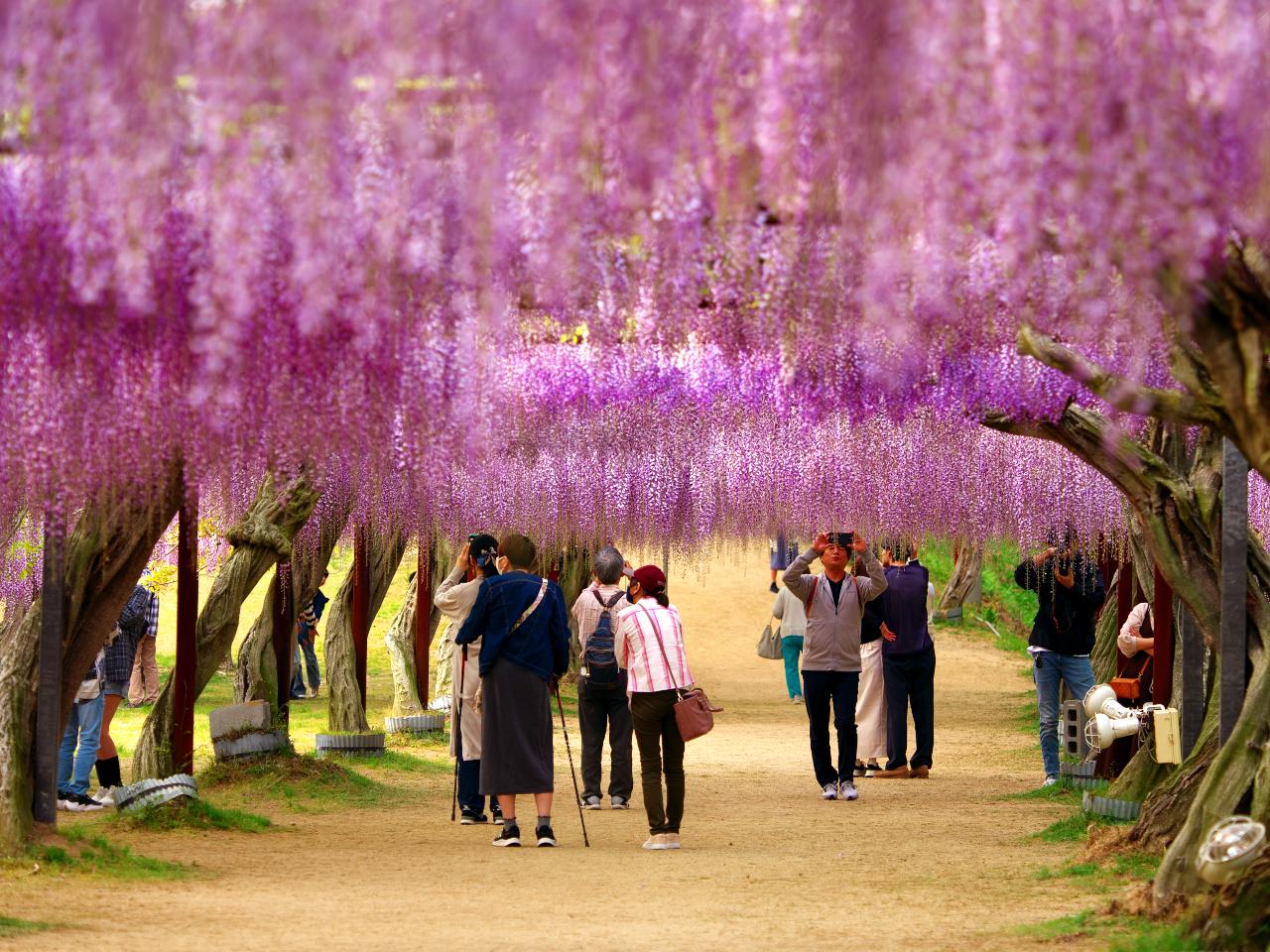 150本の藤が咲き乱れる 種類日本一の藤公園
